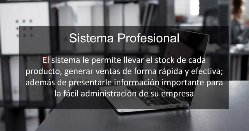 El sistema le permite llevar el stock de cada producto, generar ventas de forma rápida y efectiva; además de presentarle información importante para la fácil administración de su empresa.